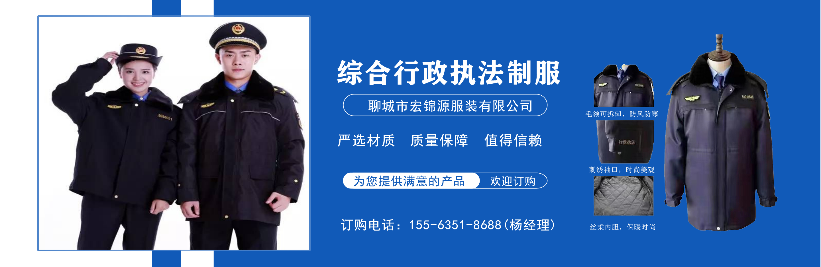 綜合行政執(zhí)法制服,交通執(zhí)法服裝,應(yīng)急管理執(zhí)法標(biāo)志服,市場監(jiān)督管理標(biāo)志服,農(nóng)業(yè)執(zhí)法服裝,生態(tài)環(huán)境保護(hù)制服,文化市場執(zhí)法服,城管標(biāo)志服裝廠,衛(wèi)生監(jiān)督制服,六部門標(biāo)志服廠家-聊城市宏錦源服裝有限公司 公司簡介/ ABOUT